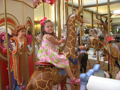 The temperature outside has been so hot we have been trying to stay cool and have fun. Well, that brought us to the mall to ride the carosel, eat lunch, and hit the Disney store with our cousins and Ammy. That was last week.